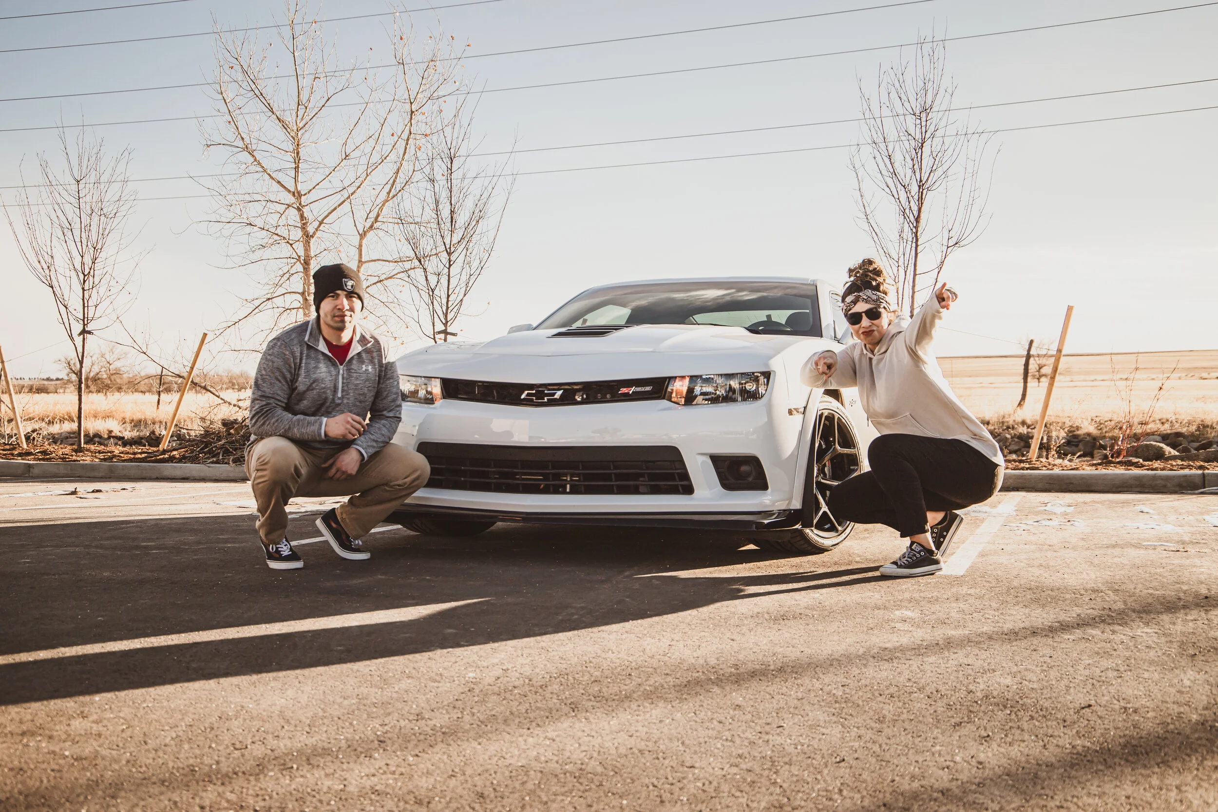 Photo shoots are more than just a time to get stunning images of cars, but a time to connect with each of the owners. Learning about the specific car and why it is special to them. As the shoot progressed and we moved on to the second location, I found out a very particular detail that has made me happy since the moment I heard it. Joey had originally brought Marissa to the session just incase I happened to be a weirdo. Immediately I laughed, for I had chosen an extremely public, brightly lit, secure location specifically in case Joey ended up being some type of weirdo. Fortunately neither of us turned out to be creepers. As that shoot ended they shared that they had taken a picture with the Camaro they had traded in with a beautifully hard pose, similar to one that my husband and I often do as well. Obviously we had to recreate it to close the night out.